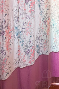 上部に柔らかいタッチのボタニカル柄の生地、裾にローズパープルの無地を組み合わせたボーダー裾仕様です。