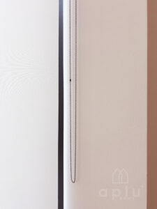 通常の白い樹脂製チェーンではなく、極力目立たず洗練された仕上がりとなるよう、金属製ボールチェーンをご提案しました。