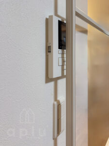 壁面にはインターホンやスイッチ類が設置されていました。